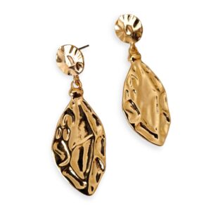 Ignite your style with our Cosmic Geo Fine Hammered Dangle Form Earrings. These earrings are the perfect blend of celestial inspiration and contemporary edge, designed to elevate your look with a touch of cosmic allure. The fine hammered texture adds an element of chic uniqueness, while the dangle form creates a mesmerizing sense of movement, reflecting the dynamism of the cosmos. Make a statement and unleash your inner star power with these cosmic-inspired earrings that effortlessly capture the essence of modern elegance.
