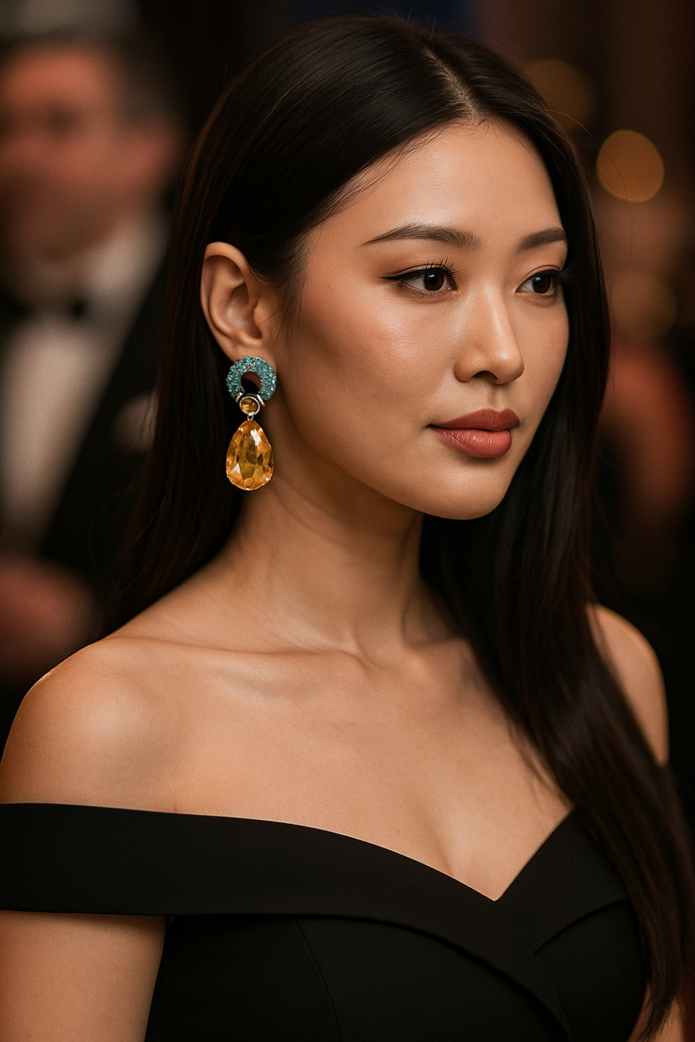 Step into timeless elegance with our Golden Era Aquamarine Teardrop Pavé Dangle Earrings. Designed in a vintage-inspired silhouette, these radiant earrings feature a shimmering gold-tone teardrop frame adorned with pavé-set crystals and a luminous aquamarine cabochon center. The intricate detailing and delicate dangle design create graceful movement and a soft sparkle with every turn. Lightweight and pierced for comfort, they’re perfect for special occasions, romantic evenings, or adding a sophisticated accent to your everyday style.