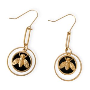 Indulge in the delicate charm of our Golden Honey Bee on Onyx Enamel Dangle Coin Earrings. These graceful and lightweight earrings exude a subtle sophistication, blending the allure of a golden honey bee with the timeless elegance of onyx enamel. With their gentle sway and elegant design, these earrings offer a stylish touch that effortlessly complements any outfit. Embrace the beauty of nature’s inspiration and add a touch of grace and whimsy to your ensemble with these stunning earrings.