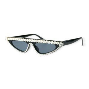 Retro 80’s Bling Skinny Cat Eye Sunglasses in jet black, pink, topaz, grey
