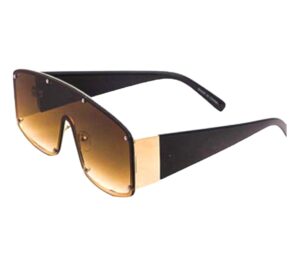 Revamp your eyewear collection with our Sporty Oversize Shield Sunglasses. Available in brown, purple, black, or red, each pair features a sleek gold-tone accent for a touch of glamour. These oversized shields not only make a bold style statement but also offer maximum protection. Elevate your sporty-chic look with these sunglasses that effortlessly combine fashion and functionality in every shade.
