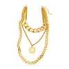 Three layer oversize chain necklace with coin 14″ 20″ and 22″ each layer. Steel, brass and alloy casting.