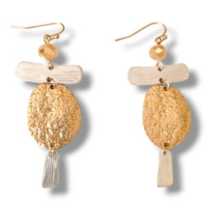 Two-Tone Metal Geo Shape Dangle Earrings with Topaz Stone
